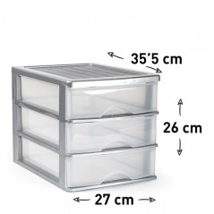 Transparent plastic chest of drawers with silver details. Composed of 3 drawers.