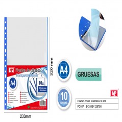 Pack of 10 units of A4 folio sleeves, 80 microns thick.