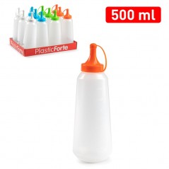 Transparent bottle with different colored cap. Ideal for your kitchen.