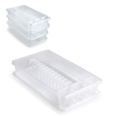 Transparent and rectangular medium size dish drainer.