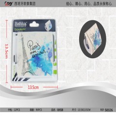 Toilet roll holder, details of the city of Paris with "Paris mon amour" message.