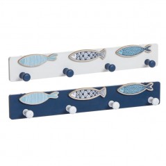 Percehero of blue color. Made up of 4 white hangers. Contains details on the top in the shape of multi-colored fish.