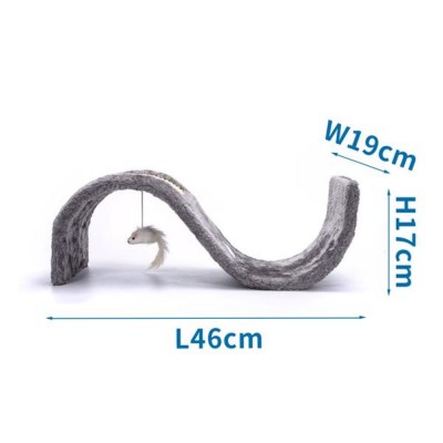 S-shaped scratching panel for cats, gray, mouse doll included