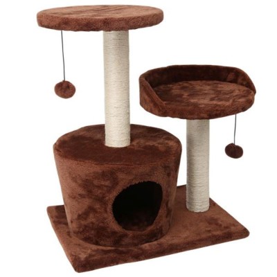 Cat tree, circular, brown velvet effect