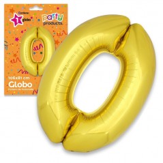 Polyamide balloon in the shape of the number 0, gold color.