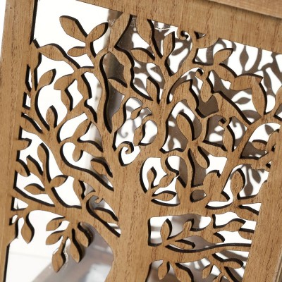Wooden candle holder, transparent with a tree silhouette on two sides. Brown color, two colors available.