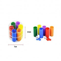 Pack of 6 multi-colored goblets that includes three dice and chips of the respective colors.