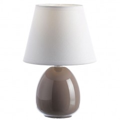 Ceramic table lamp. Beige base and white shade. White cable with switch. Does not include bulb.