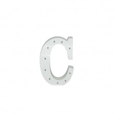 White wooden letter C with LED lights.