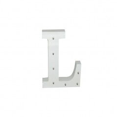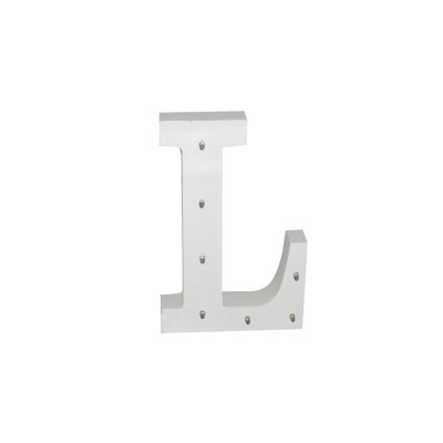 White wooden letter L with LED lights.