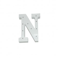 White wooden letter N with LED lights.