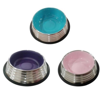 Pantone Anti-slip Stainless Steel Inner with Striped Dog Bowl, Size L