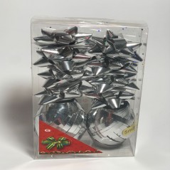 Pack of 8 self-adhesive bows with silver ribbon