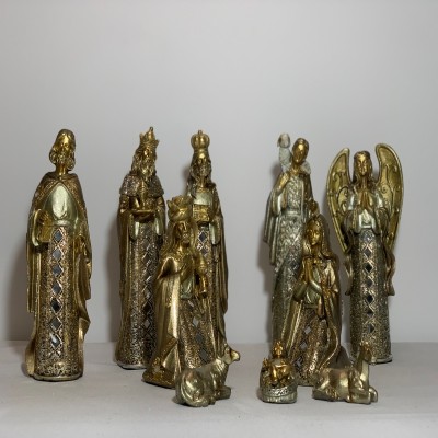 Golden nativity scene made up of 10 pieces