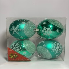 Set 4 green snowflake Christmas balls
