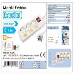 Multiple 3-socket base with individual switch with 1.5 M cable.