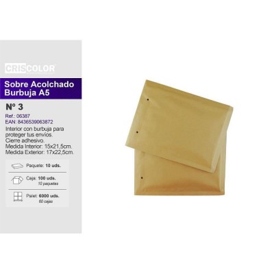 A5 envelope with bubble inside to protect shipments. Contains adhesive closure.