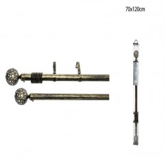 Extendable curtain rod with circle-shaped detail with holes. Includes 2 terminals, 2 supports and 8 rings.