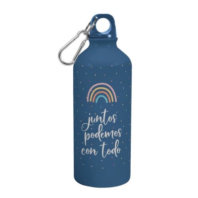 Purple aluminum canteen with multi-colored dot print, rainbow pattern and "Together we can do it all" text. Different models available.
