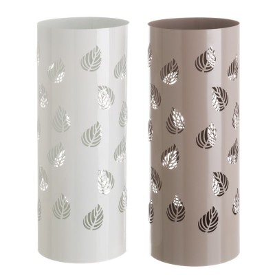 Circular umbrella stand with leaf-shaped details. Two colors available.