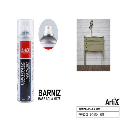 Varnish spray, water-based, matte effect.
