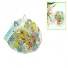 Pack de piedras transparentes con detalles en color rojo, amarillo, verde y azul simulando canicas. Diferentes modelos disponibles.