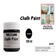 Shadow-colored chalk effect paint, ideal for multiple surfaces.