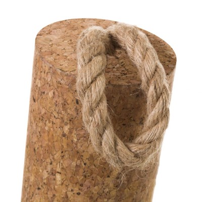 Cylindrical brown cork style door stop with rope. Two models available