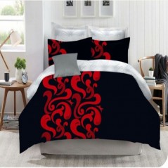 Nordic set consisting of 4 pieces. Black game with red details. Different sizes available. Contains two pillowcases (50X75 CM), a countertop (240X220 CM) and an adjustable bottom sheet (150X200 CM).