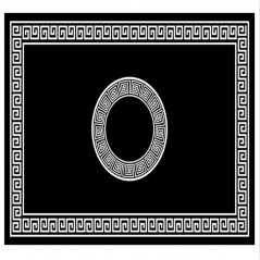 Black carpet with white details around the entire carpet and circular detail in the central part.