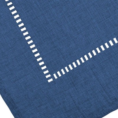 Blue tablecloth with details at the bottom. Different colors available. It does not allow bleach or tumble drying. It does not support dry cleaning. Maximum ironing at 110º.