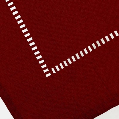 Red tablecloth with details at the bottom. Different colors available. It does not allow bleach or tumble drying. It does not support dry cleaning. Maximum ironing at 110º.