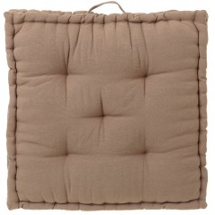 Beige floor cushion. Washing instructions: does not support washing, does not allow bleach, does not tumble dry, does not allow dry cleaning or ironing.