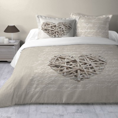 characteristics: Duvet cover, measure 269x240CM + 2 covers of 63X63CM, beige with letter and heart print, material: 100% cotton