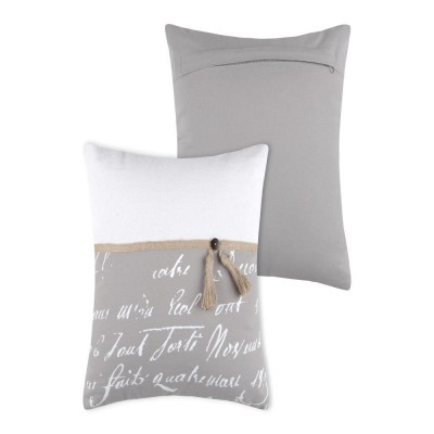 Features: Cushion measure 40x40CM, 100% polyester material, gray, white with print and brown details