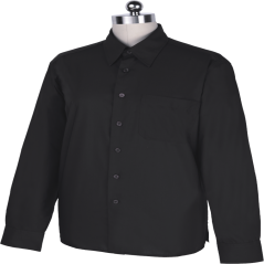 Black uniform shirt with a pocket on the front. Different sizes available.