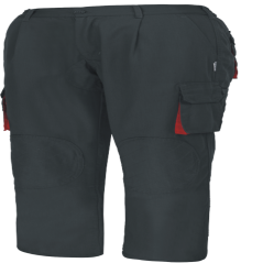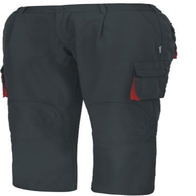 Black uniform trousers with red details at the bottom of the pockets. It has two side pockets, two back pockets and raised detail on the knees.