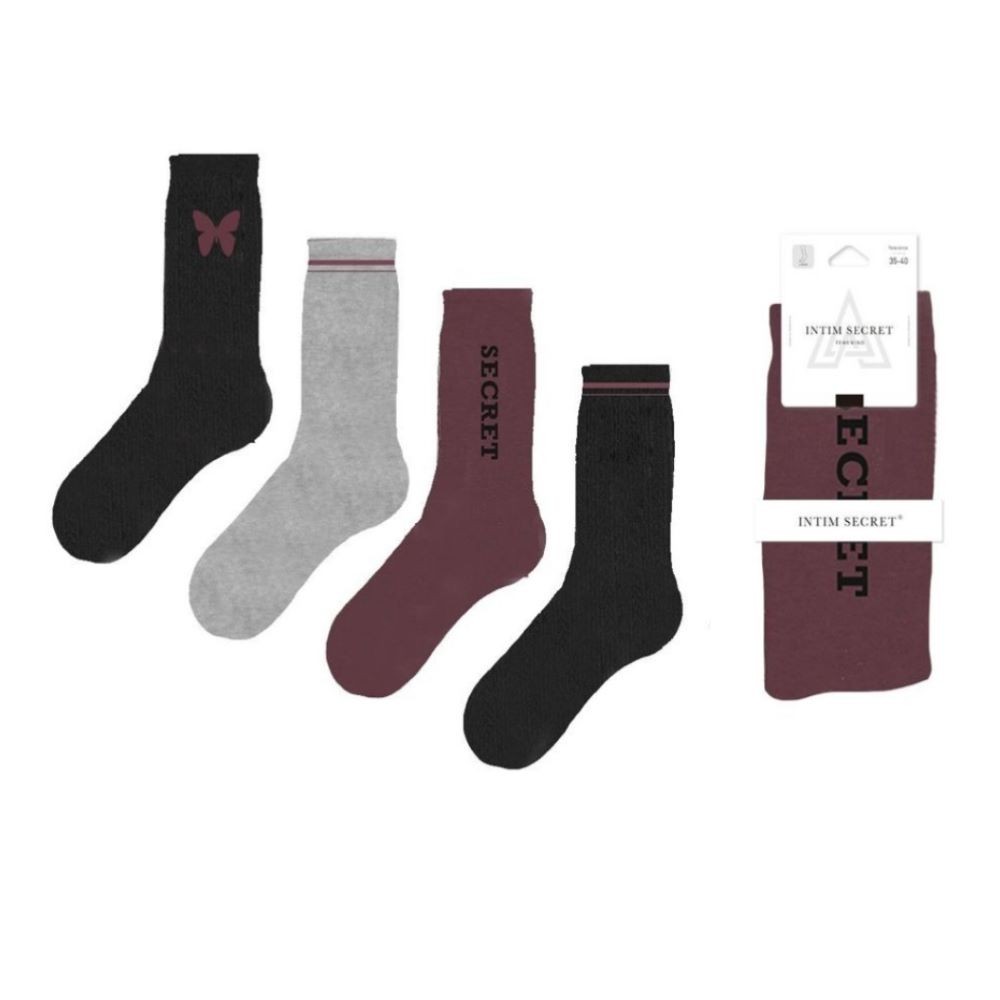 3-pack long white, black, gray or maroon socks with butterfly print details or "Secret" message. Different models available.