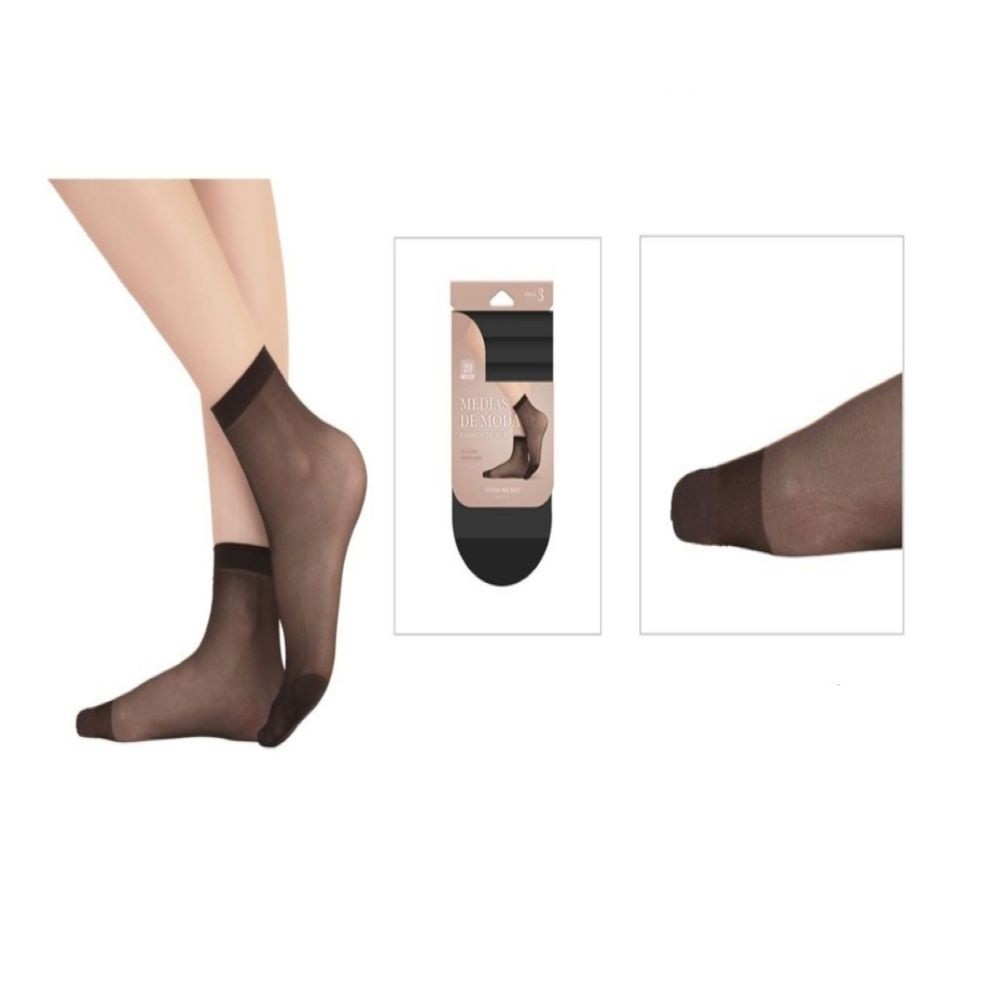 Pack of 3 pairs of 20 DEN short socks, one size fits all with opaque toe cap.