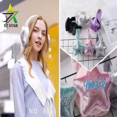 Star-shaped earmuffs for women with glitter, different colors available.